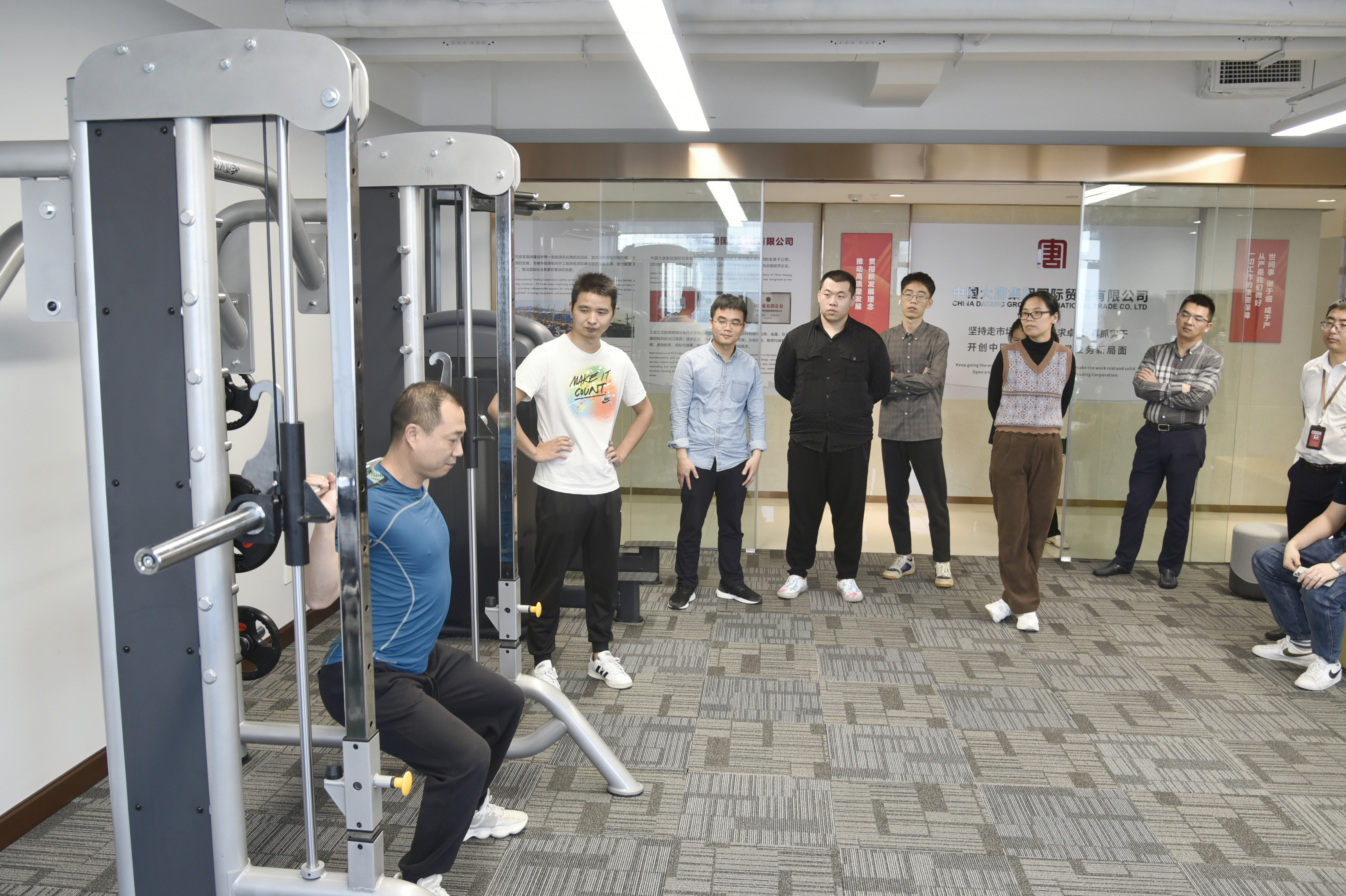 該公司健身活動室充分利用現有辦公樓的場地資源進行規劃和設計,購置了跑步機、橢圓機、健身車、劃船機等十多類常用室內健身器材,按照有氧區、力量區合理布置。同時,該公司聘請專業老師每周一次為職工進行健身現場實戰培訓和理論講解,為豐富職工業余生活創造了一個良好的環境,讓大家業余時間有了新“去處”。