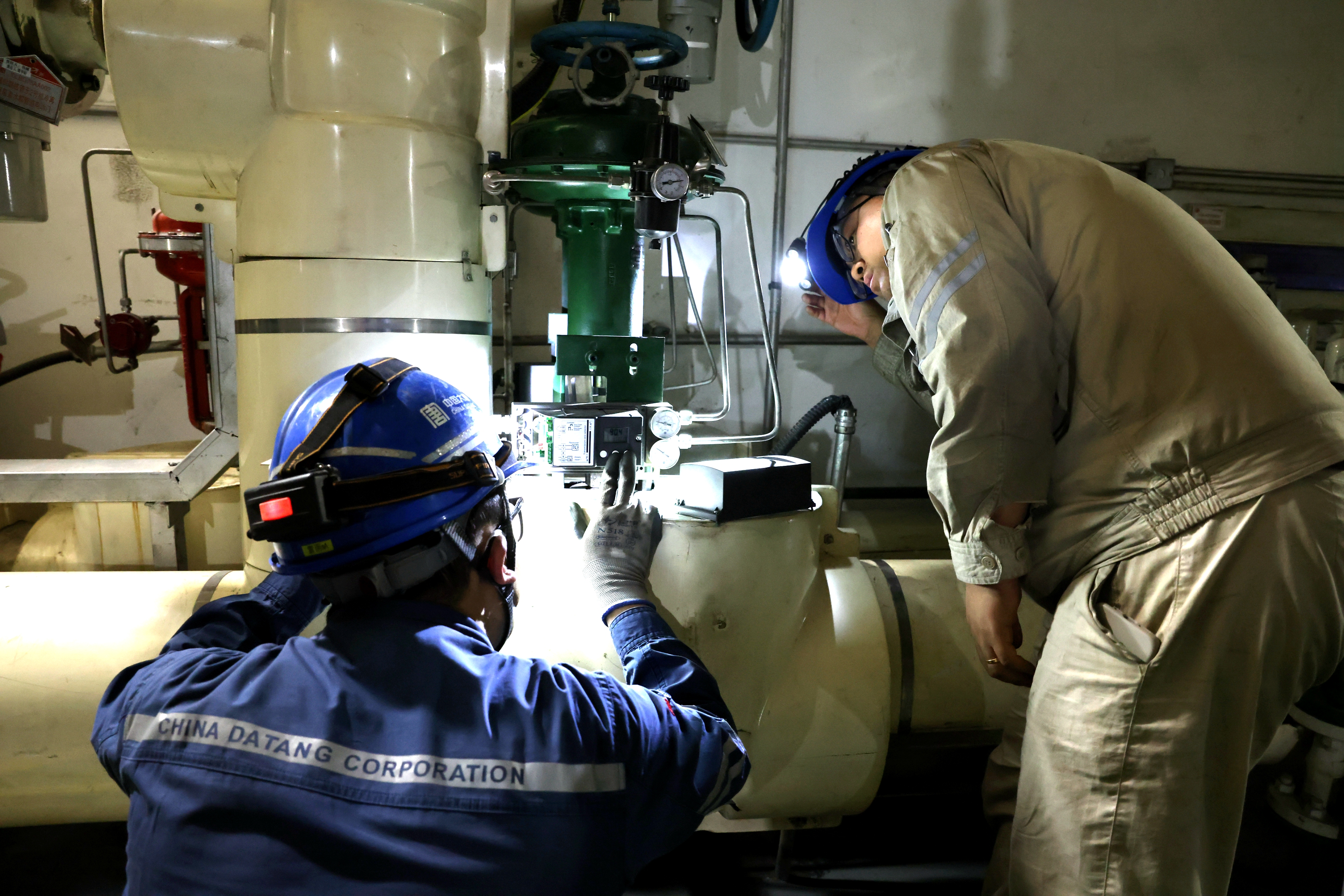 40攝氏度的廠房像個密不透風的桑拿房,王西深吸一口氣,將聽音棒的金屬端緊緊按在電泵輔助油泵電機驅動端外殼,另一只手攥著橡膠柄貼在耳邊,借著手電筒的光,貓著腰一步一挪,像在排查地雷般一寸寸“掃描”電機表面。