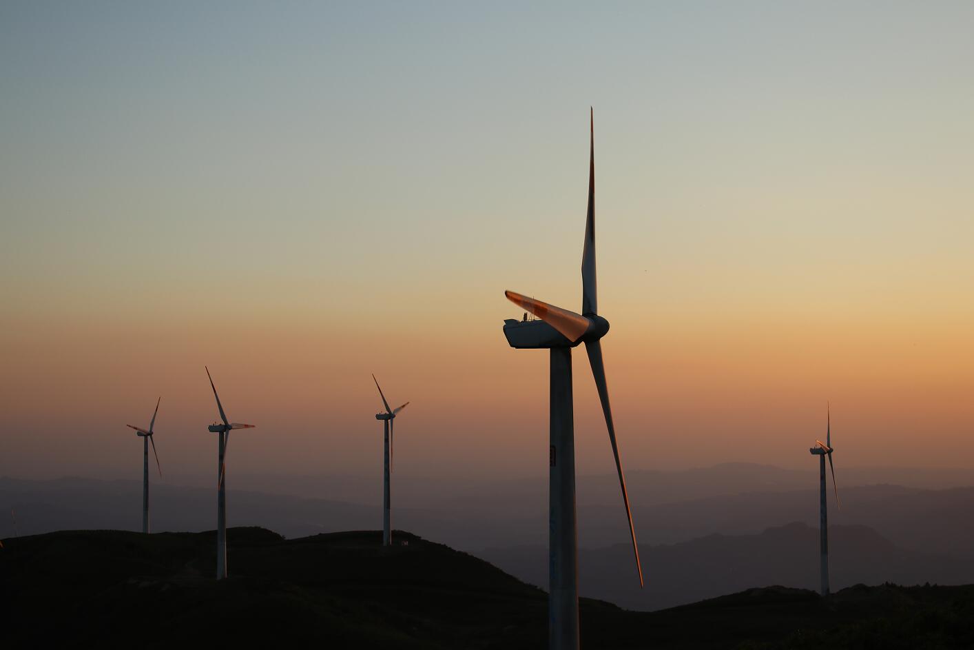 三壩風電場百米高的風機上,“小藍帽”沐浴著霞光向上攀爬。新能源事業部的唐亞波笑著說:“去年,我們的‘大白’風機累計發電量4.57億千瓦,較五年平均增長190%,是名副其實的綠色能源!”