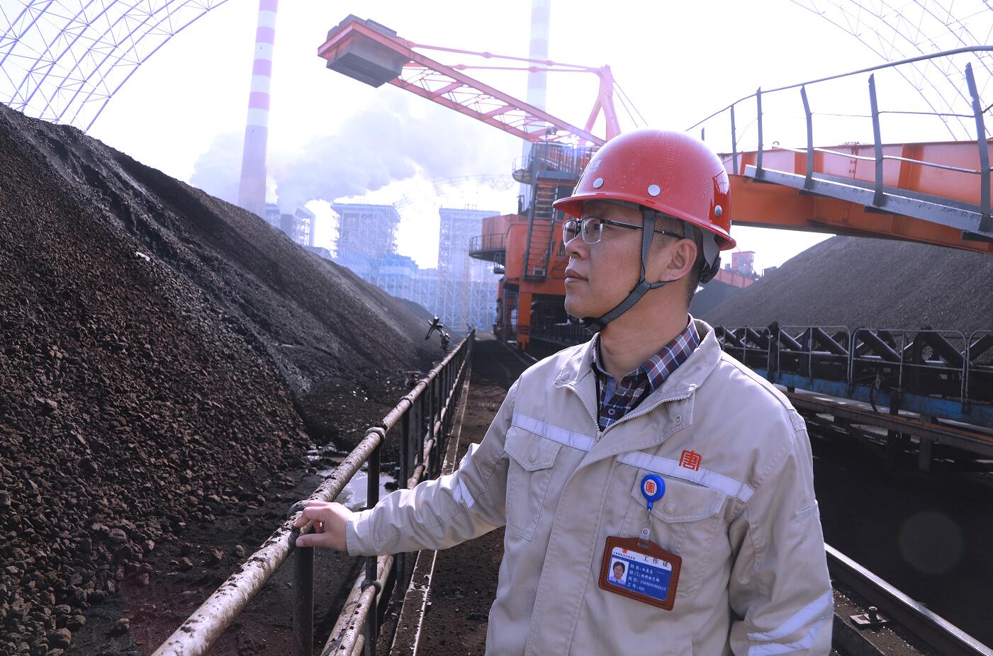 孫孟志在煤場檢查燃料庫存(王艷婷/攝)
