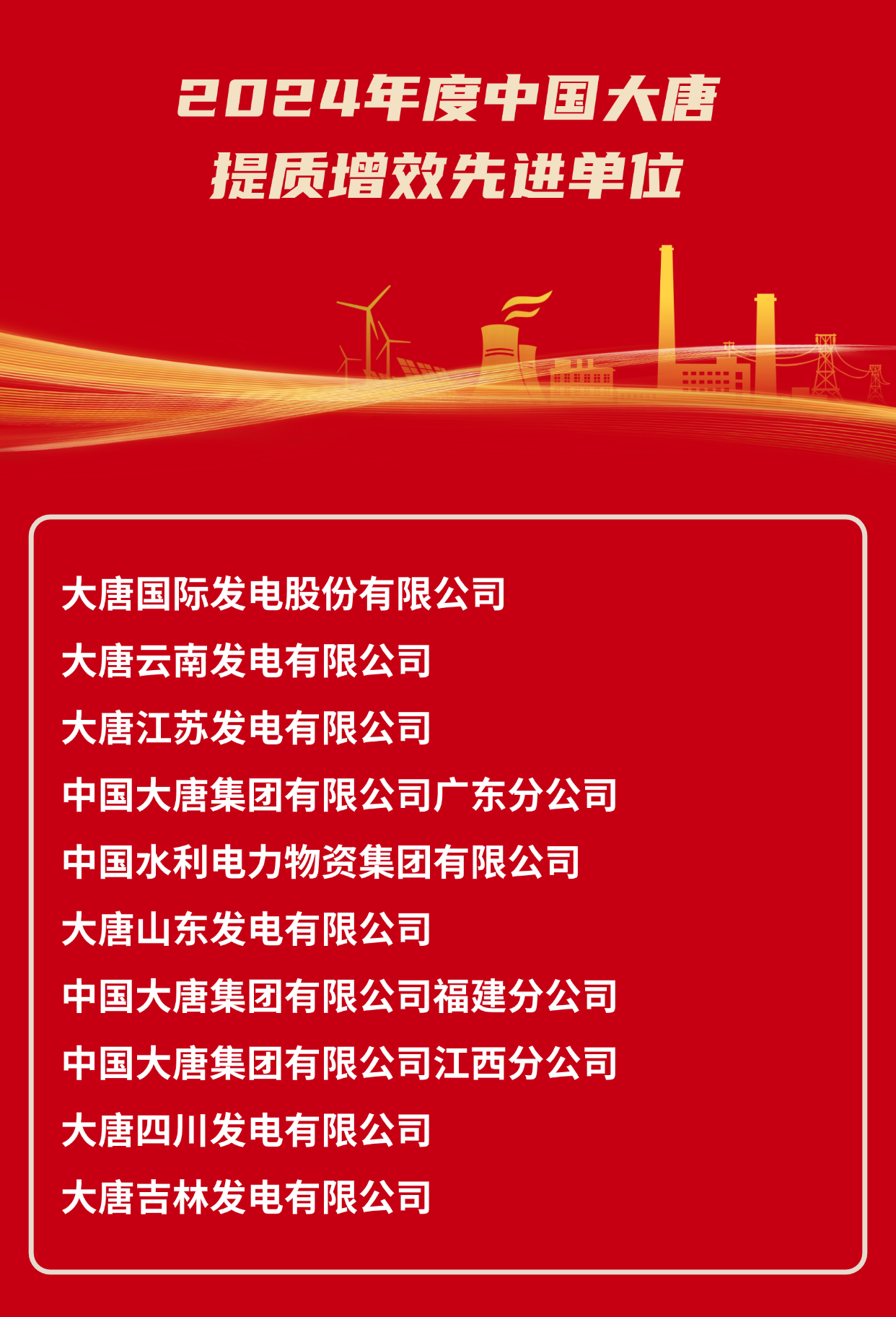2024年度中國大唐集團(tuán)有限公司提質(zhì)增效先進(jìn)單位