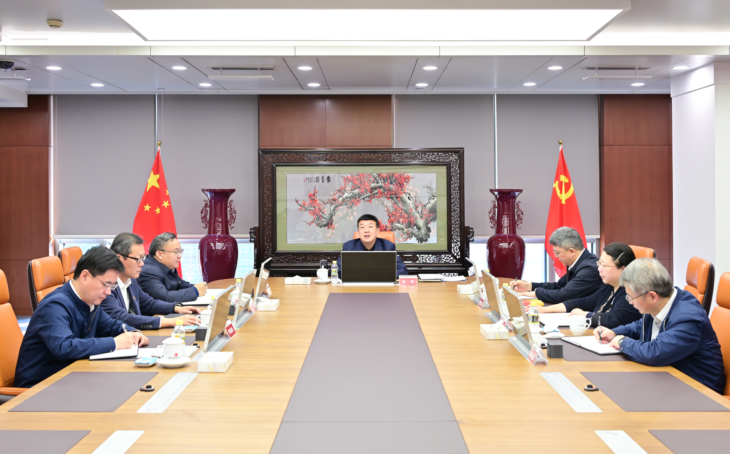 集團公司黨組書記、董事長呂軍主持學習并講話,集團公司領導李向良、余波、王瑛、曲波、陶云鵬、李建偉參加專題學習研討。
