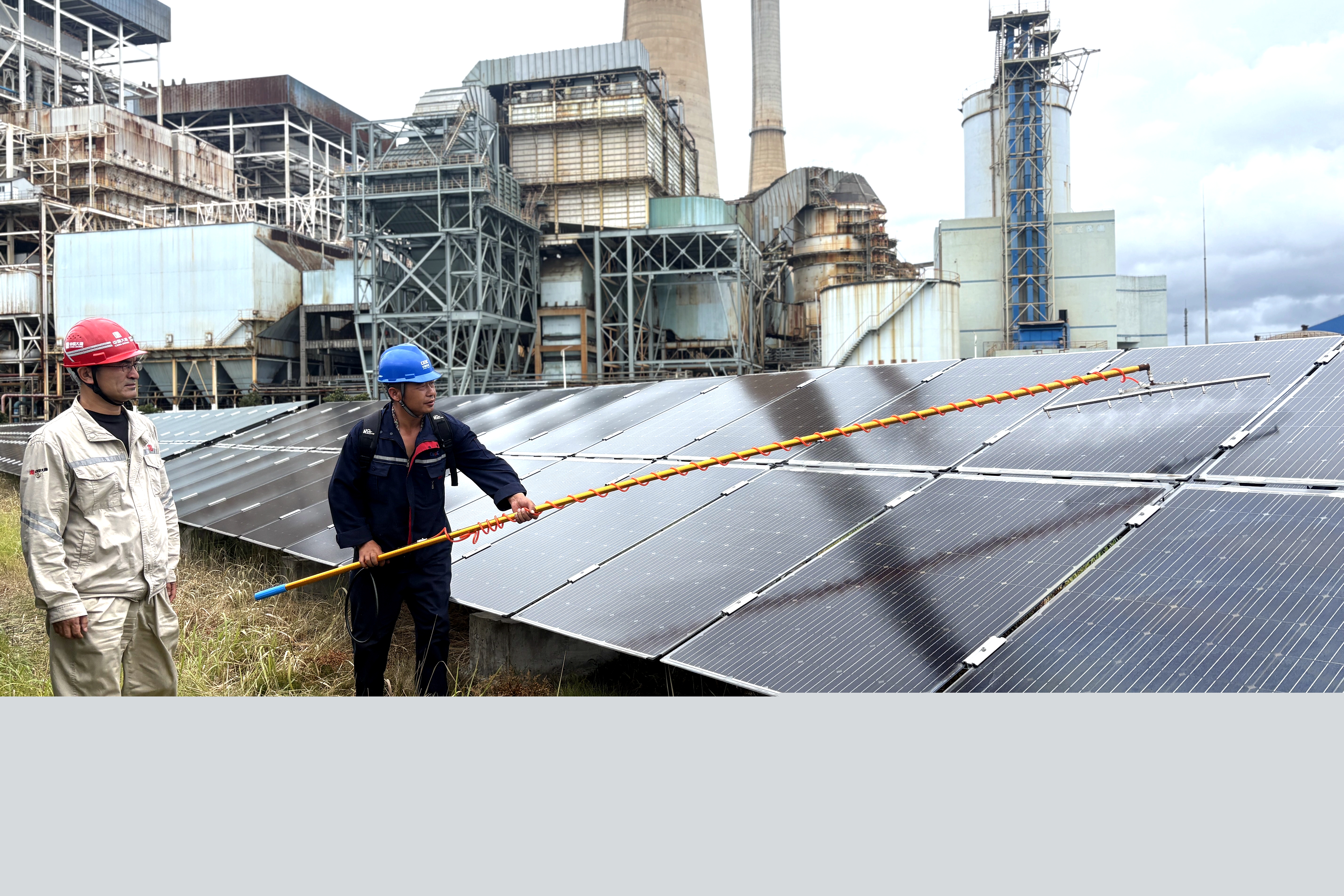 浙江新能源公司烏沙山廠區(qū)光伏電站位于火電廠生產(chǎn)區(qū)域二期場地,這里常年彌漫著白色蒸汽。蒸汽遇冷凝結(jié)后,會形成“石膏雨”,在光伏板表面結(jié)成水漬般的污垢。過去,該公司采用“人工+機器人”的清潔方式,往往剛清洗完畢,“石膏雨”便又隨之落下,最多三天,光伏板就會和未清洗時一樣。不僅如此,每次清潔時必須使用專用清洗劑,每塊光伏板要清洗5遍以上,但“細心呵護”后發(fā)電效率依舊不理想。“組件清洗就是治標(biāo)不治本,不加以重點防治,清洗也是徒勞。”寧波區(qū)域運維中心主任曹魯心感慨道。