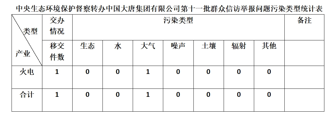 2025年6月14日,中央第七生態環境保護督察組向中國大唐集團有限公司移交第十一批群眾信訪舉報件,共計1件,為來電舉報,涉及大氣問題1個。所有舉報件辦理工作已第一時間進入調查核實辦理程序,辦理情況將按照相關要求反饋督察組,并及時向社會公開。